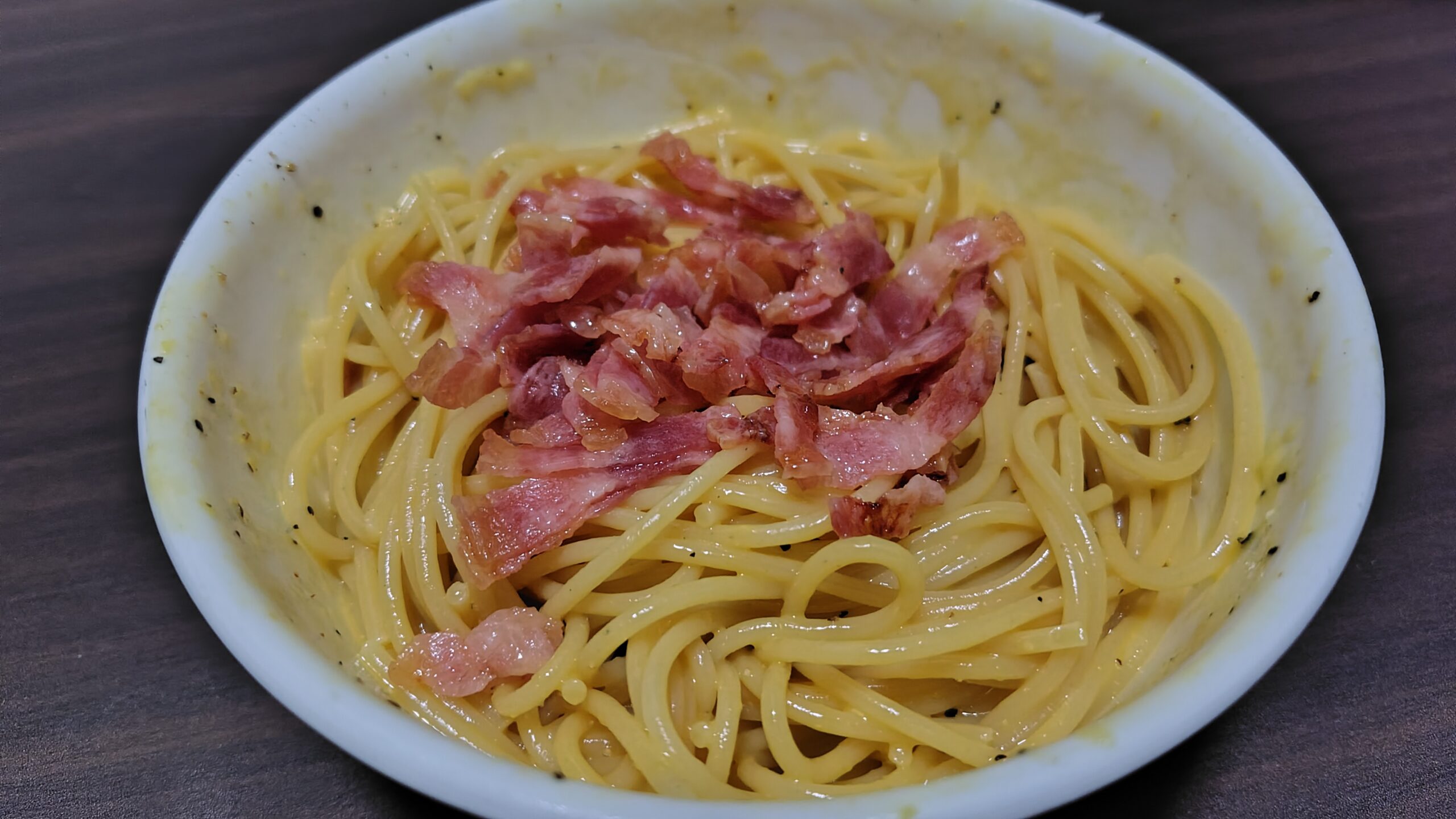 最後に、今日の夕食を…カルボナーラです。